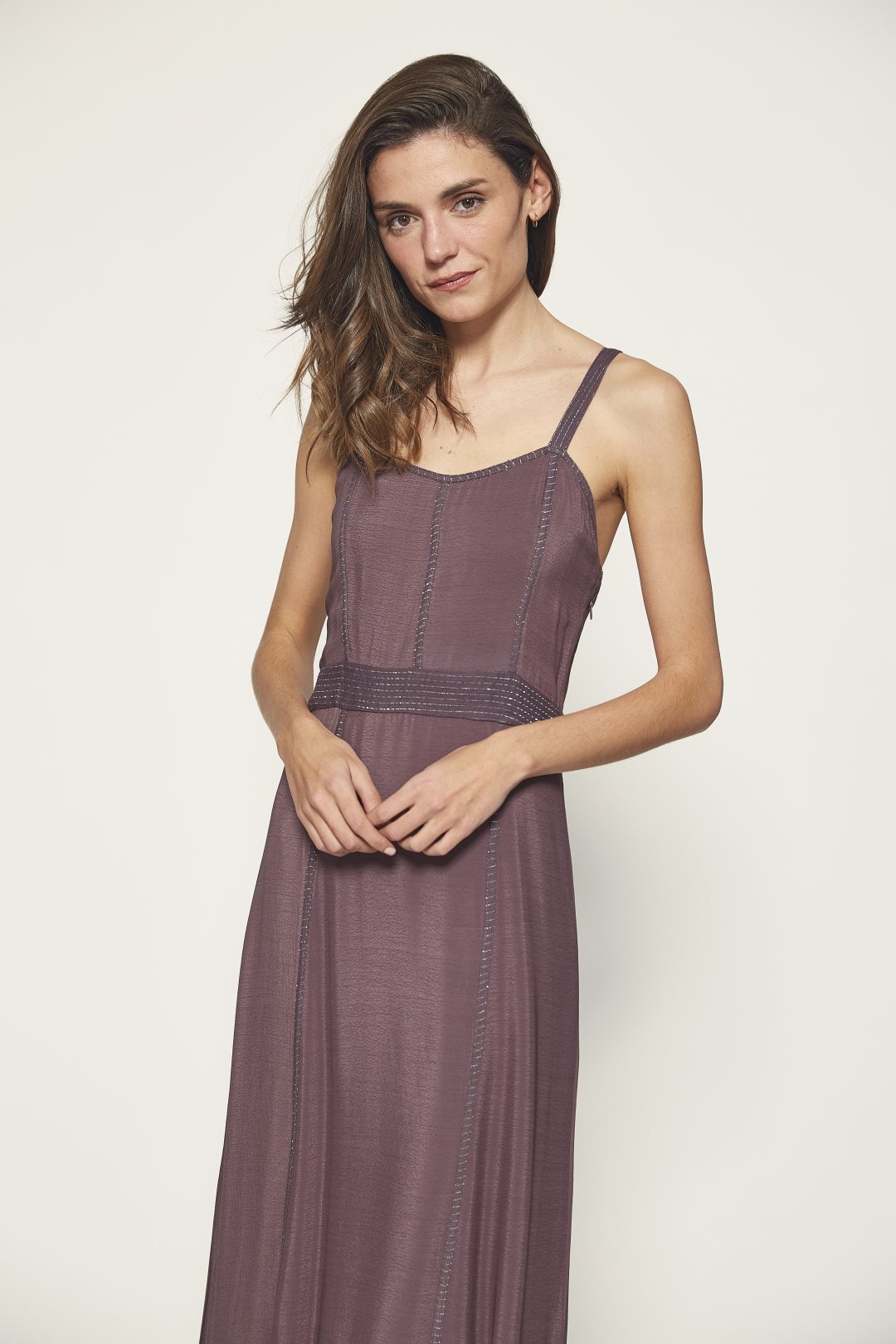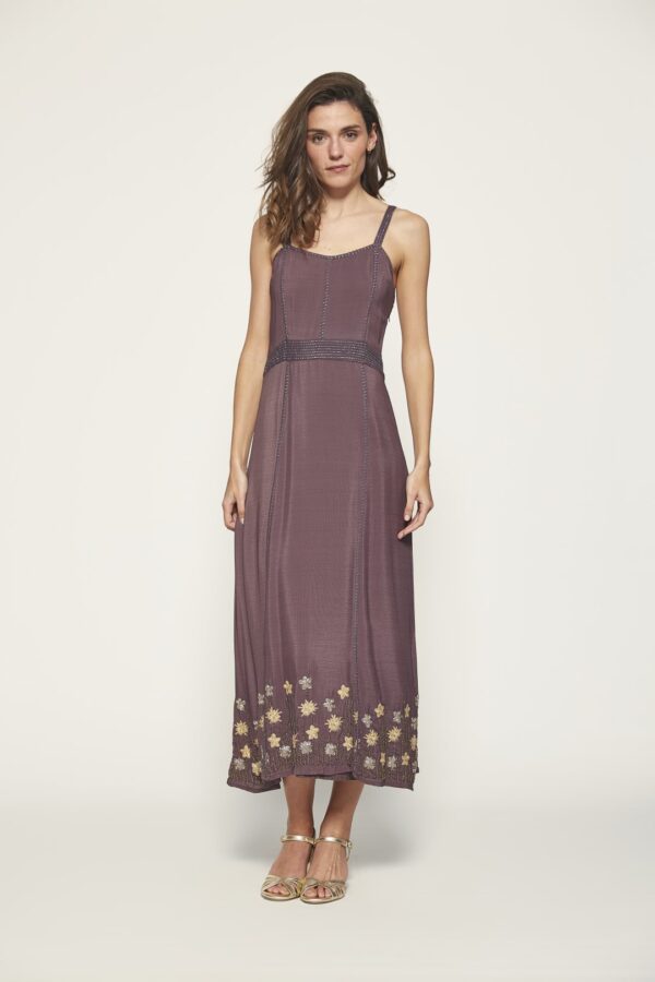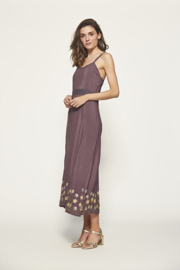 This sophisticated long strap dress is a key piece for your next celebration. Its flawless design, enhanced with metallic thread embroidery, adds a subtle touch of glamour, while its flowing, elegant cut offers comfort without sacrificing style. Perfect for evening events, weddings, or any occasion where you wish to stand out, this dress is part of the exclusive MD’M STUDIO guest collection. Crafted with high-quality materials, it boasts artisanal details and highlights the natural beauty of the wearer. Ideal for those seeking a unique and refined option.