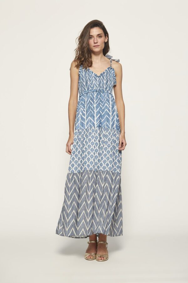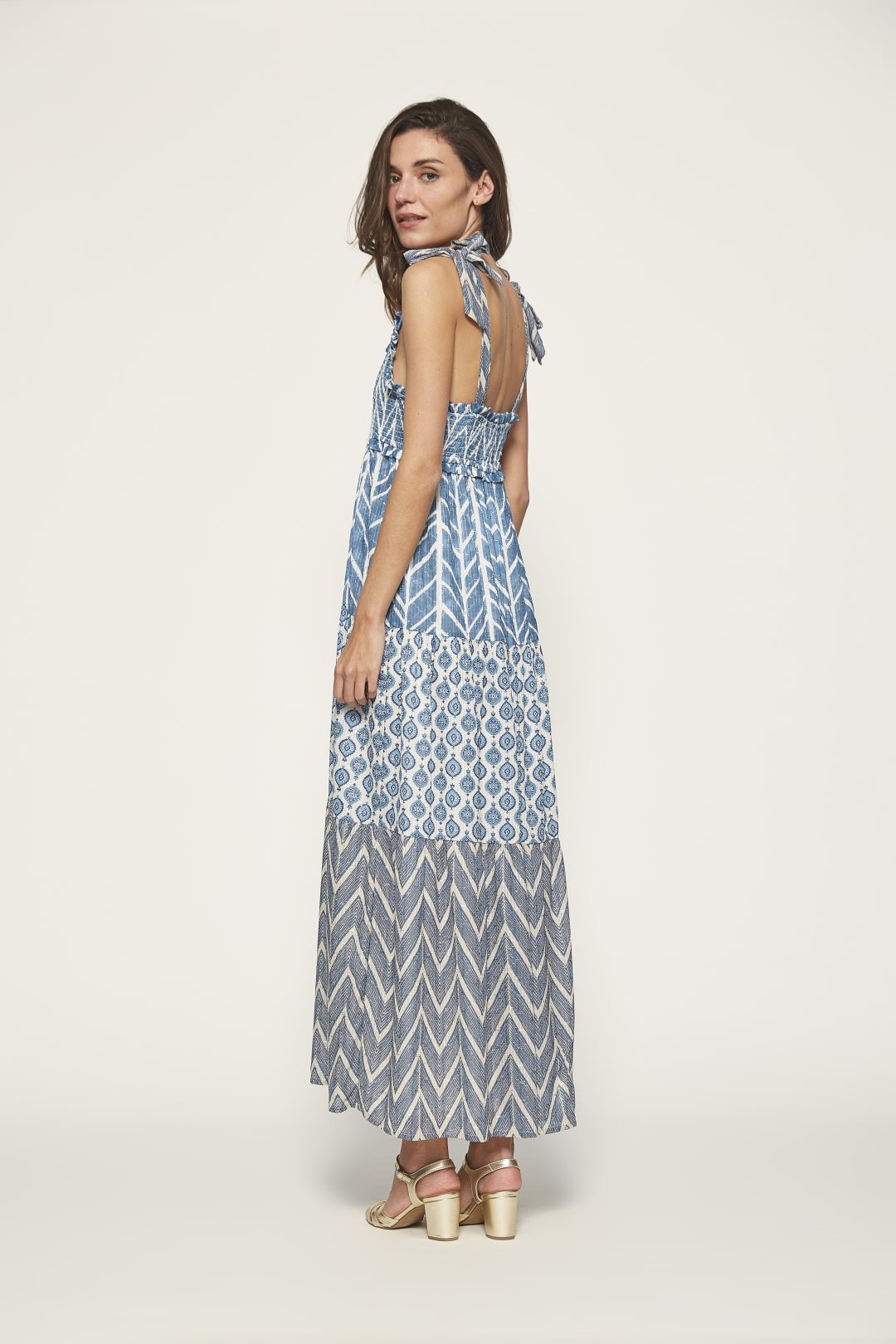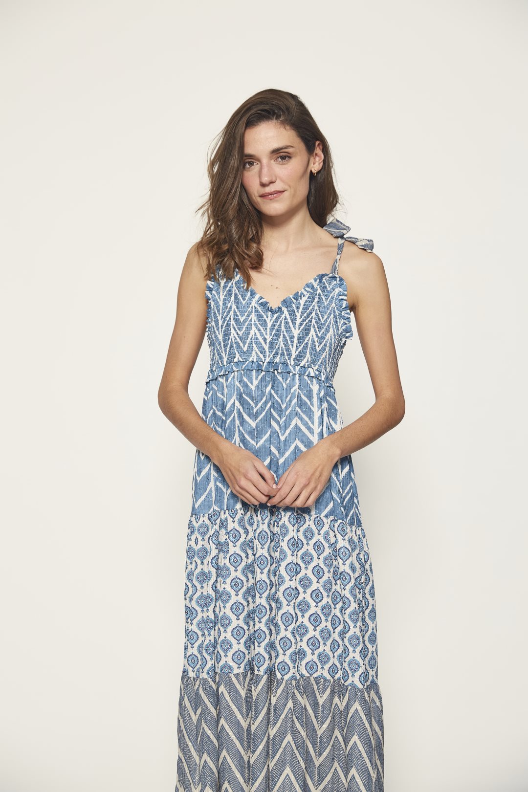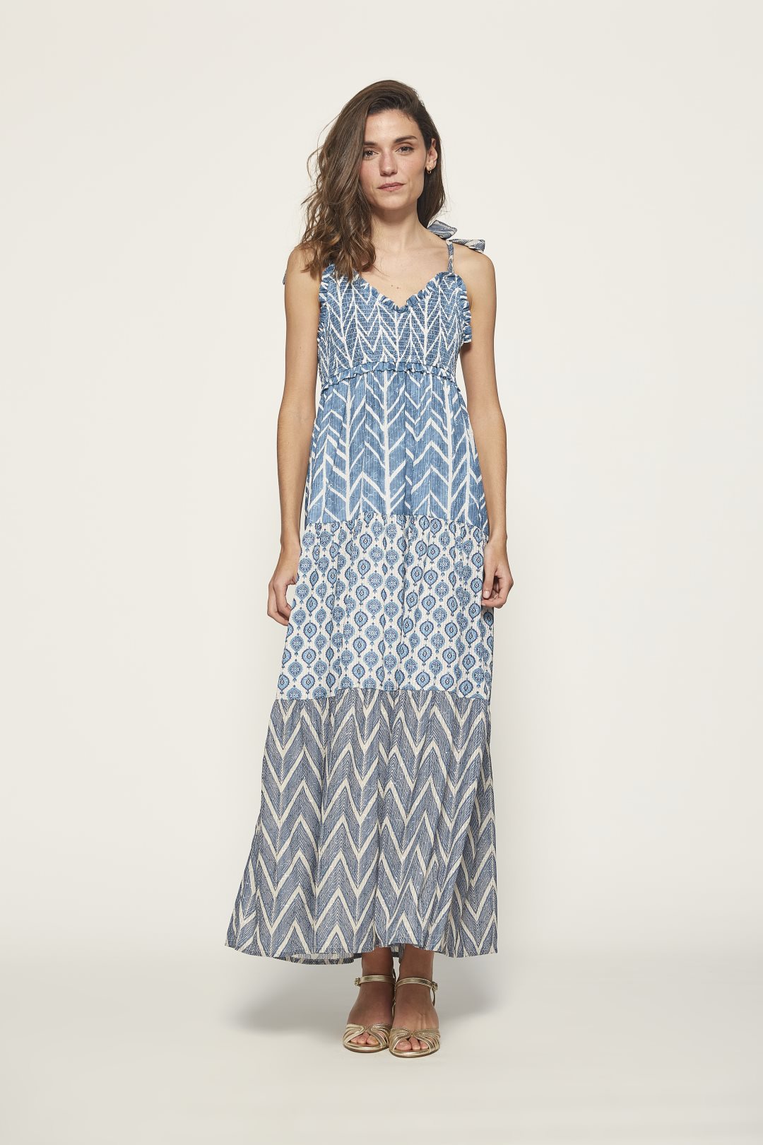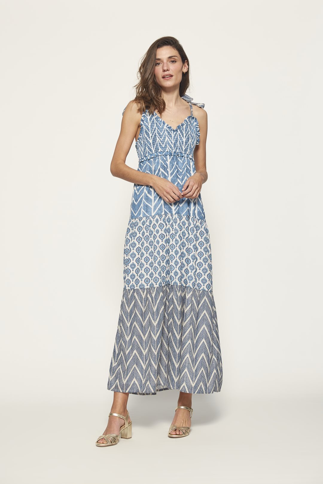 The long dress with combined print panels is an essential piece from the MD’M Studio guest collection. Its heart neckline enhances the feminine silhouette, while the tie straps allow for a customized fit. Made from lightweight, breathable fabrics, it’s perfect for the most elegant events during the spring-summer season. With its modern print combination, this dress will be your go-to for standing out with style and sophistication.