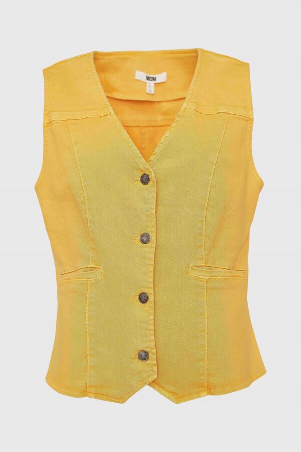 This cotton denim vest is the ideal piece for the season. With chest pockets and a front button closure, it offers a relaxed and comfortable style perfect for your spring and summer days. The cotton fabric ensures breathability and comfort, while its versatile design makes it a must-have item to pair with any outfit. Whether layered over a basic tee or a blouse, this vest easily complements various looks, creating modern and laid-back styles.