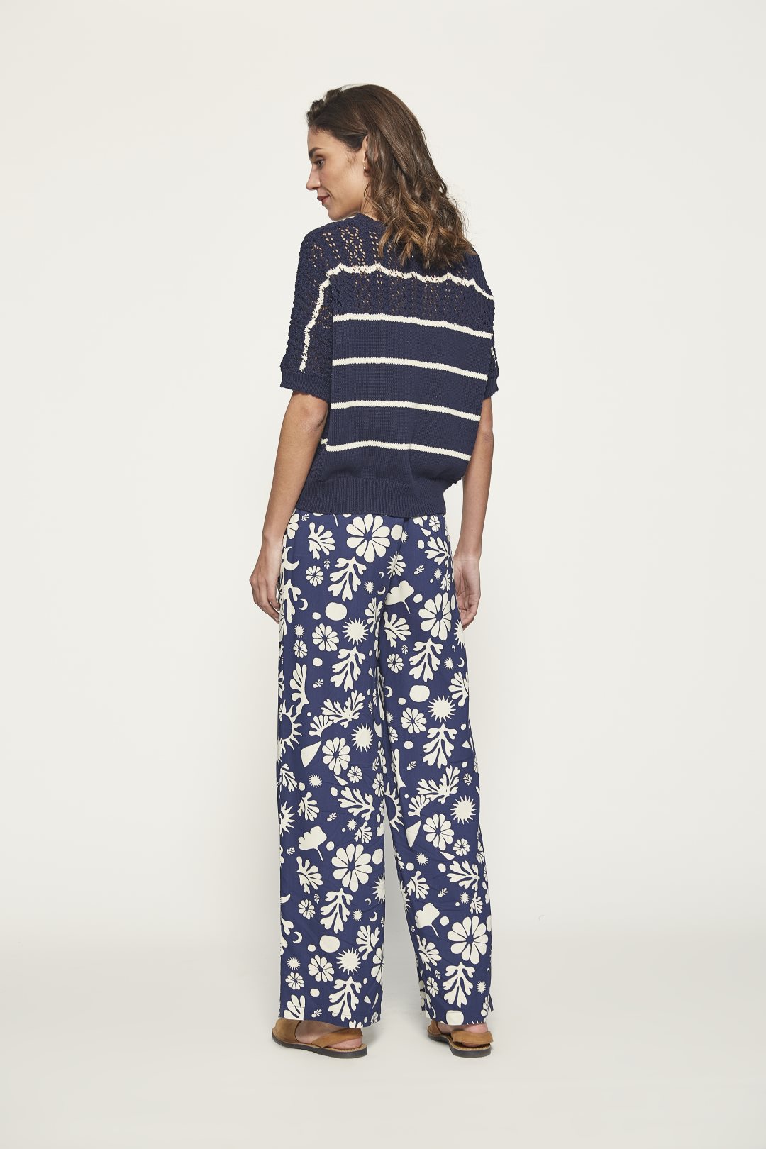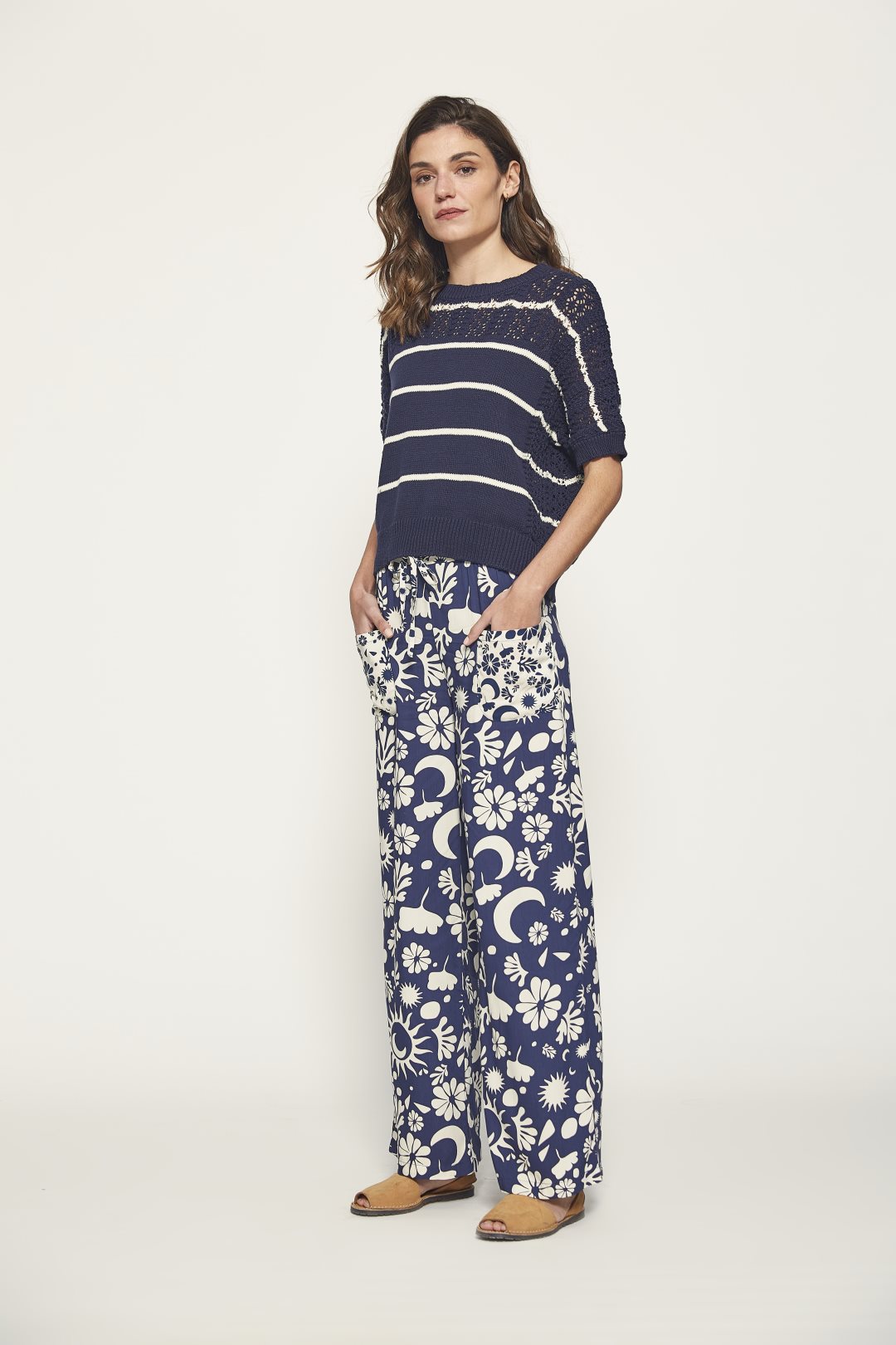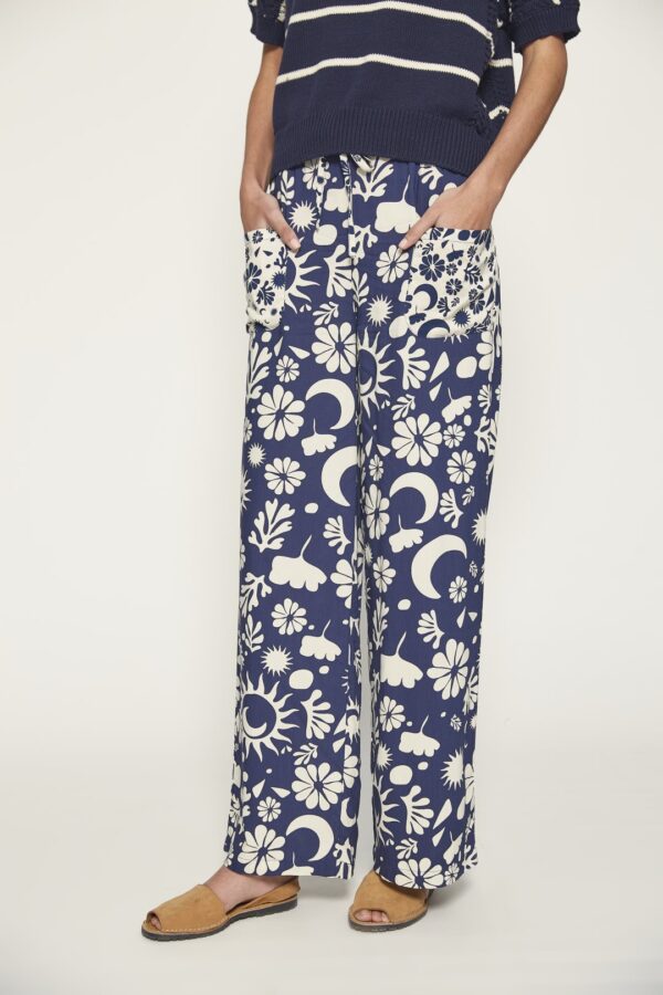 Crafted from fluid viscose, these straight pants stand out with a bold negative print, adding a modern and sophisticated touch to your wardrobe. The plastron pockets are both stylish and practical, making this piece an ideal choice for creating fresh and versatile spring and summer outfits. A perfect option for those who appreciate both comfort and style in one garment.