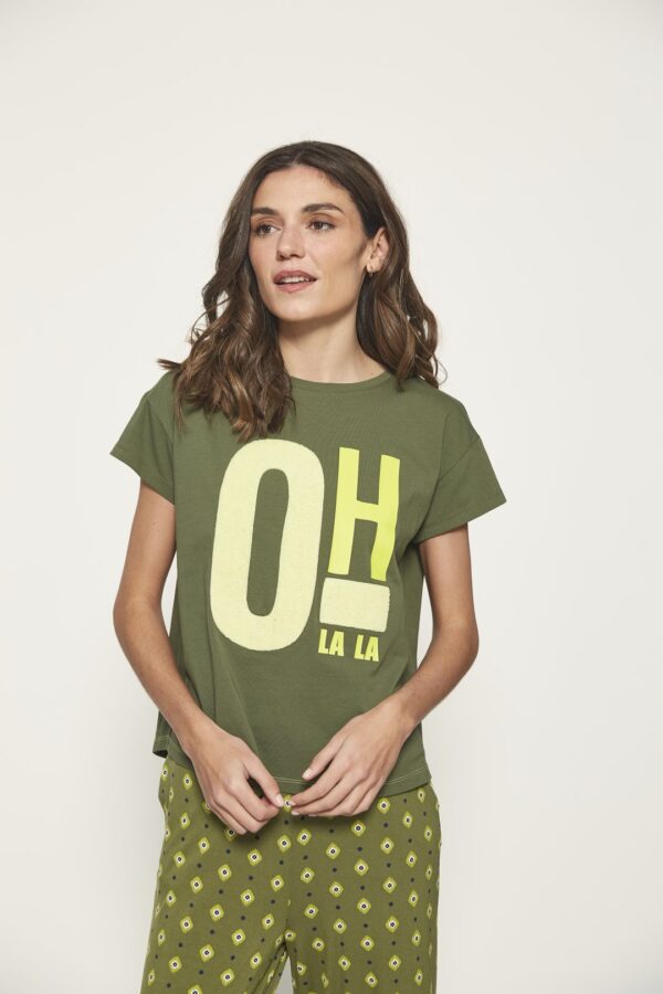Añade un toque moderno y original a tus looks con esta camiseta de manga corta de MD’M. Su escote redondo aporta comodidad, mientras que la frase serigrafiada destaca por su diseño creativo. El detalle de rizo en las letras aporta textura y estilo, ideal para combinar con pantalones o faldas en cualquier ocasión. Disponible en la nueva colección primavera-verano.