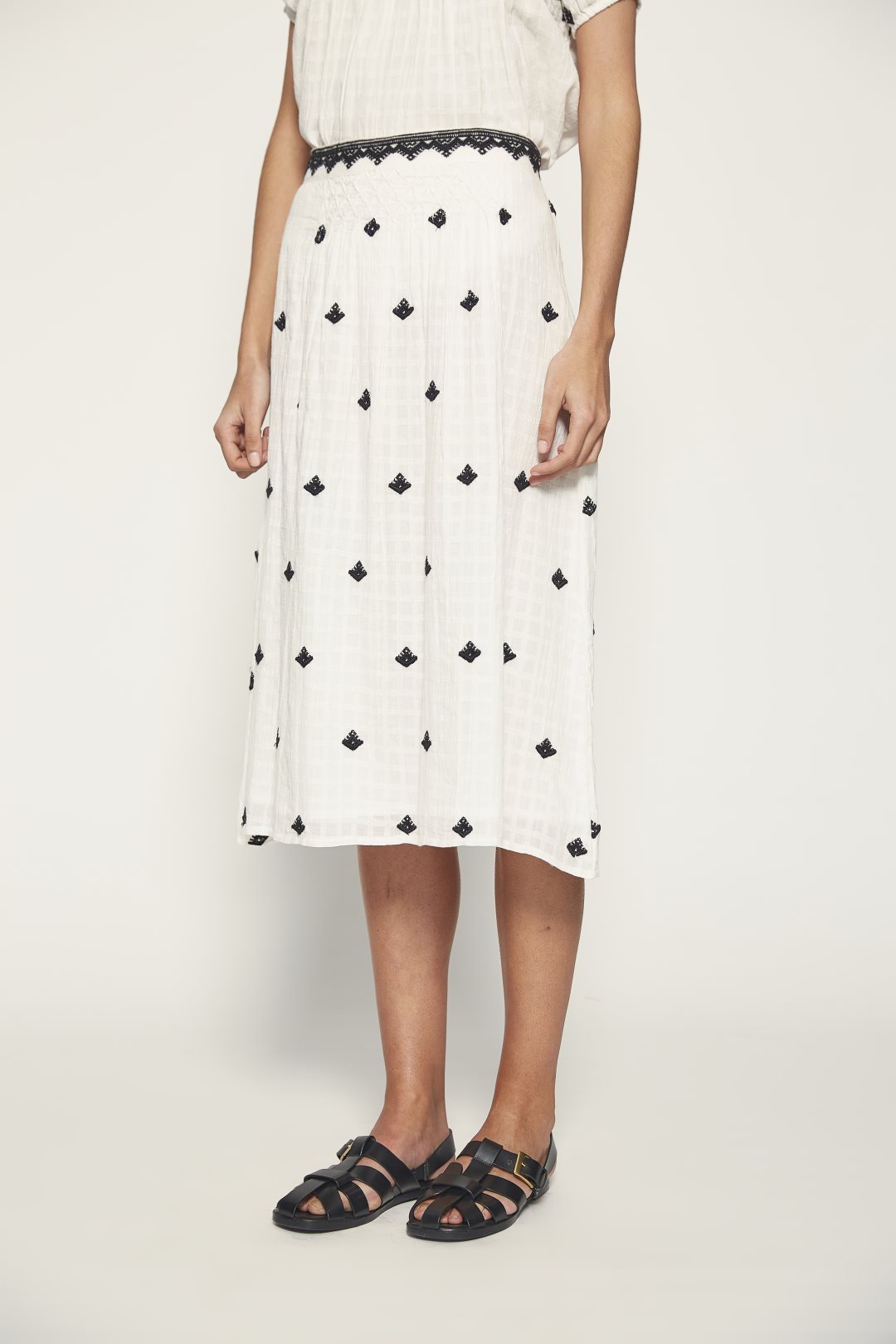 Falda midi con bordados