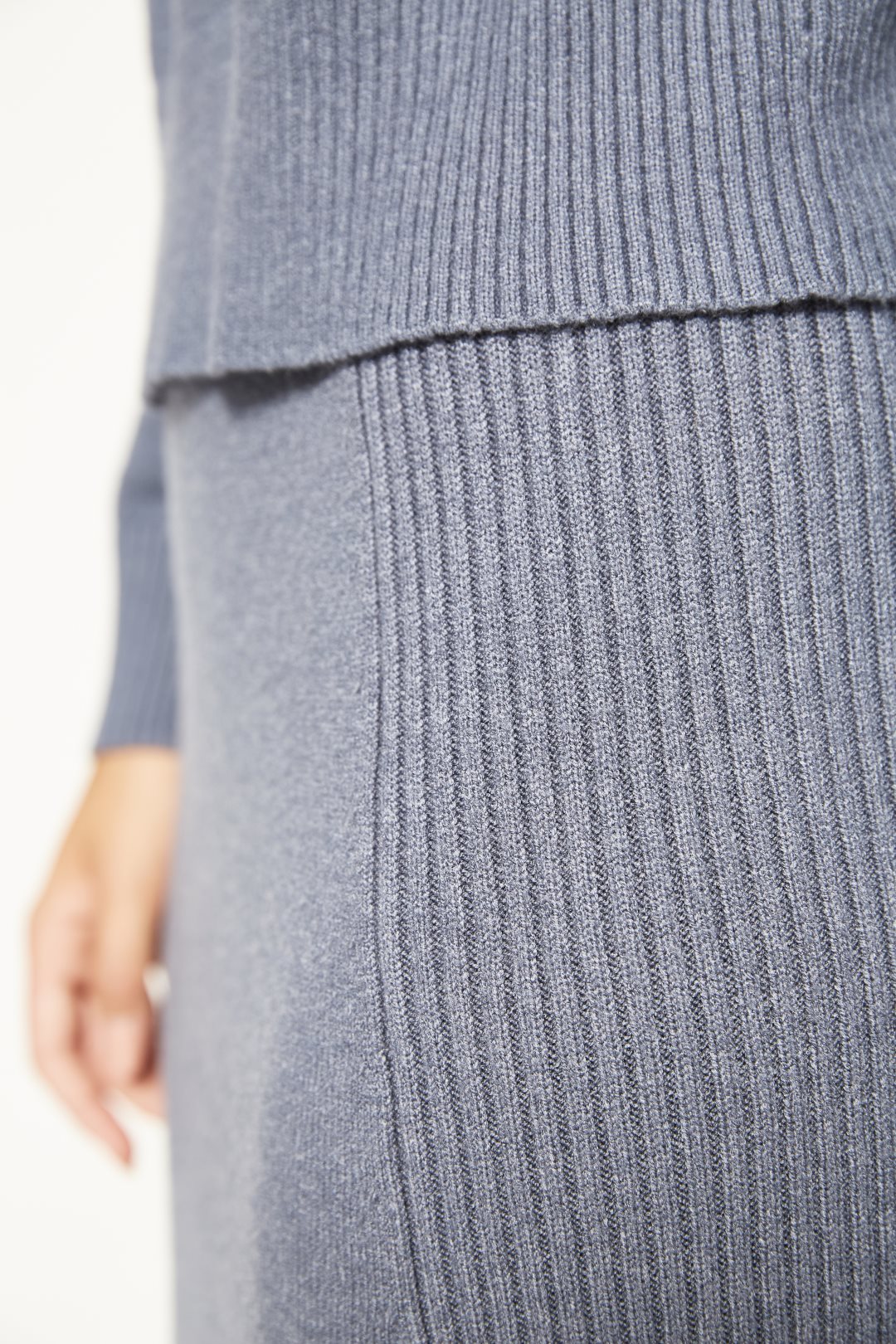 Falda de corte recto y longitud midi con cintura elástica. Confeccionada en tejido liso de efecto melange. Bajo recto con acabado limpio, sin costura visible. Silueta recta y fluida. Color azul