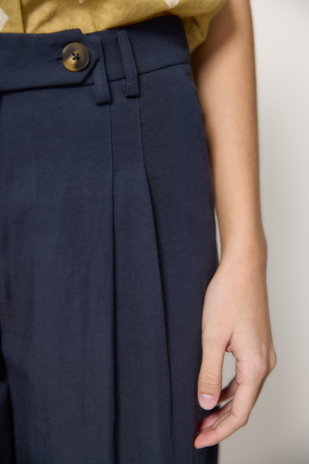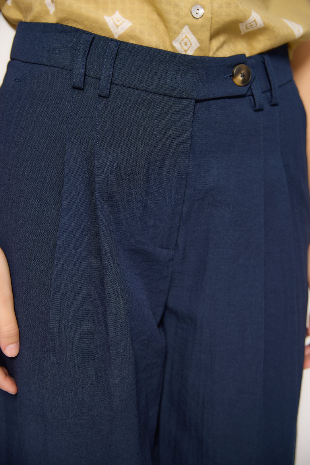 Pantalón para mujer de la colección primavera-verano de MD’M. Confeccionado en una mezcla de viscosa que aporta suavidad y fluidez, presenta un diseño de corte recto con pinzas delanteras que estilizan la silueta. Incluye cintura con trabillas, cierre frontal con botón y bolsillos laterales. Una prenda cómoda y versátil, ideal para looks casuales o de oficina. Disponible en varias tallas.