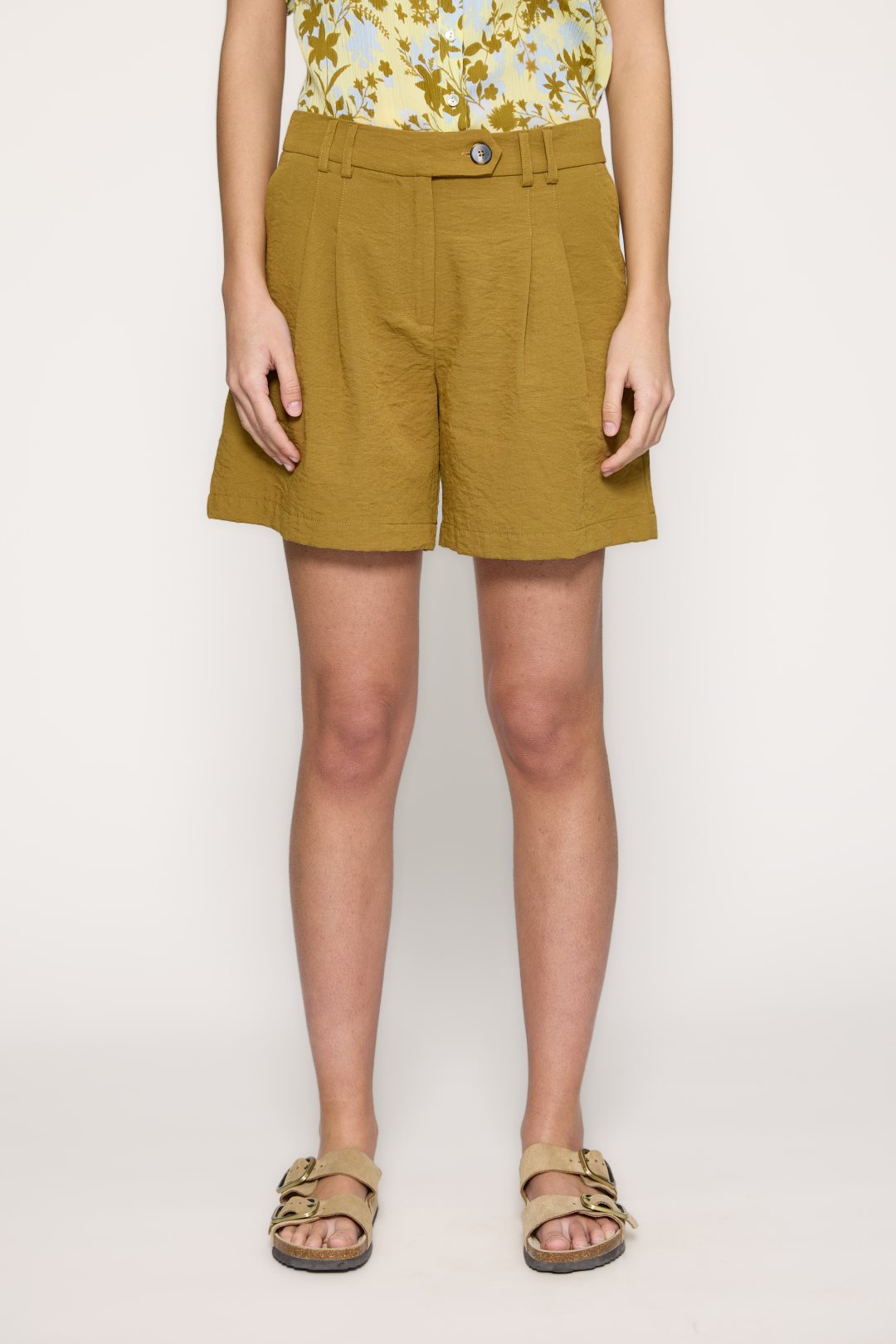 Short sastre de corte fluido. Color caqui