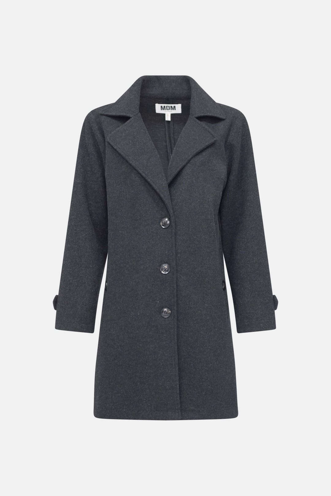 Abrigo de mujer de la colección otoño-invierno de MD’M. Prenda clásica y funcional confeccionada en tejido de mezcla viscosa que aporta suavidad, caída fluida y un tacto agradable. Presenta cierre frontal con una hilera sencilla de tres botones para un acabado limpio y elegante. El cuello de solapa tradicional permite llevarlo abierto o cerrado, adaptándose a diferentes estilos. Cuenta con bolsillos laterales integrados en las costuras para mantener la línea depurada y práctico acceso. Las mangas terminan con detalle de tira y botón en el puño, aportando un toque refinado. Su longitud cubre la cadera y llega al muslo superior, ideal para combinar con pantalones o faldas sin añadir volumen. Corte recto o ligeramente entallado que ofrece versatilidad y favorece la silueta. Disponible en varias tallas.