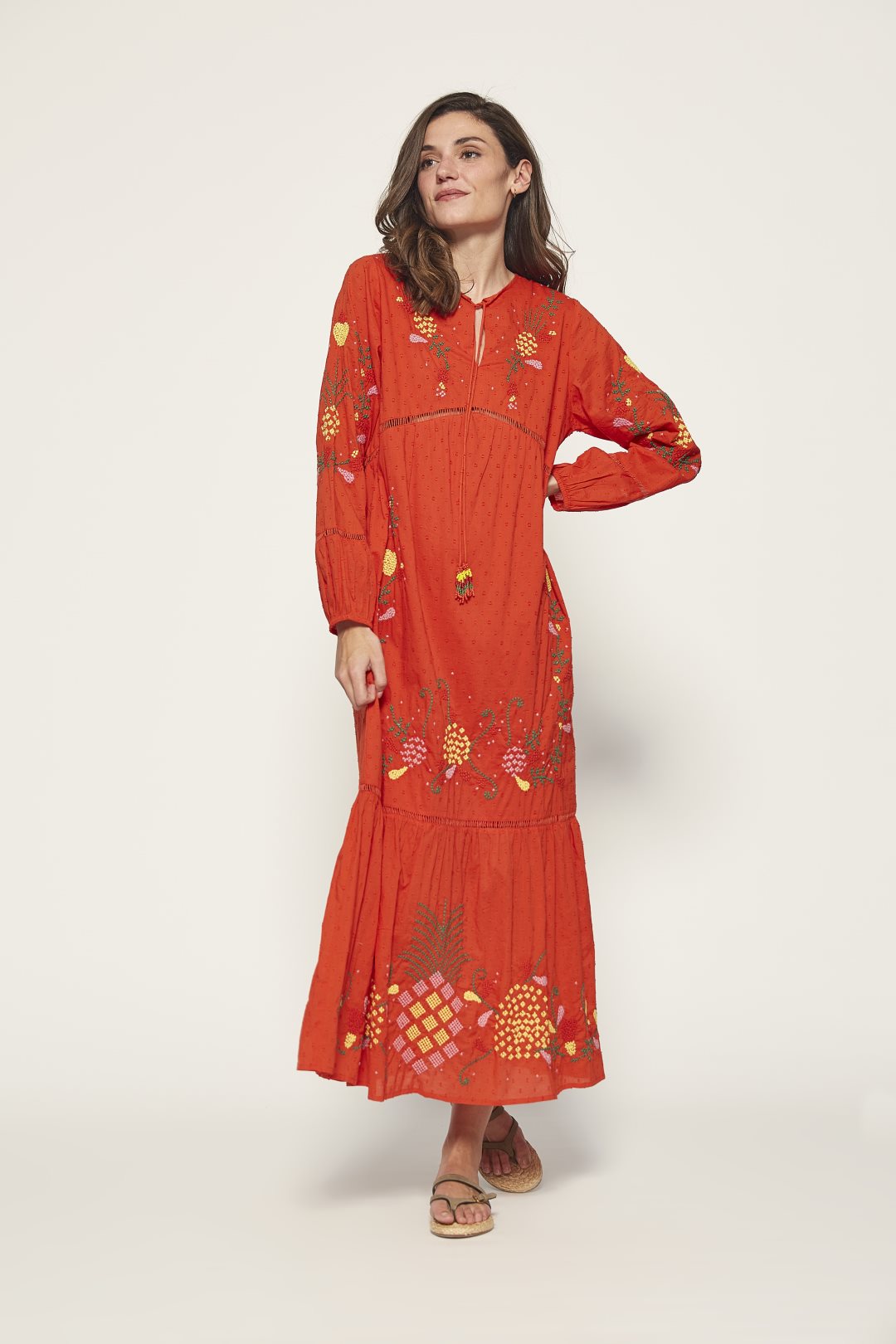 Este impresionante vestido largo de la colección invitada MD’M STUDIO destaca por su estilo boho, con detalles bordados que aportan un toque sofisticado y único. La manga larga y el corte fluido del vestido lo convierten en una opción ideal para eventos primaverales y veraniegos, ofreciendo una combinación perfecta entre elegancia y comodidad. Ideal para invitadas que buscan un look fresco y estiloso en bodas, cenas o celebraciones.
