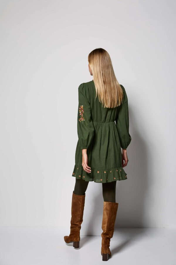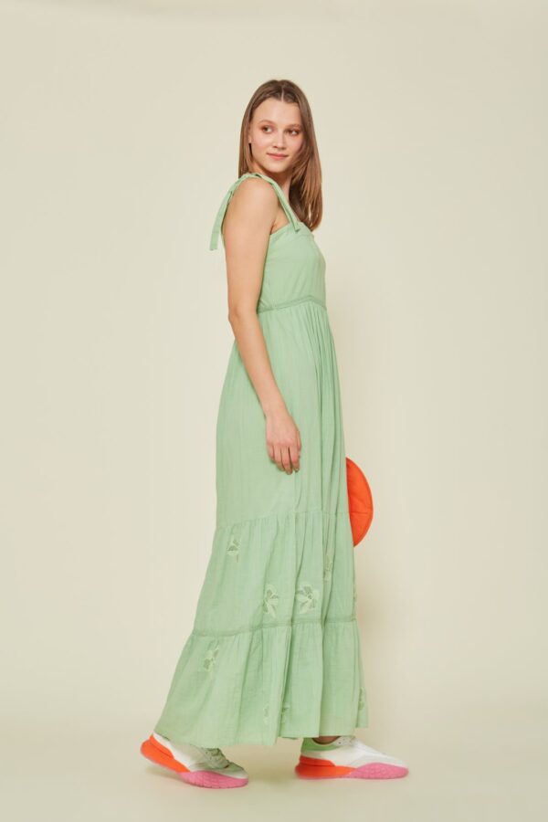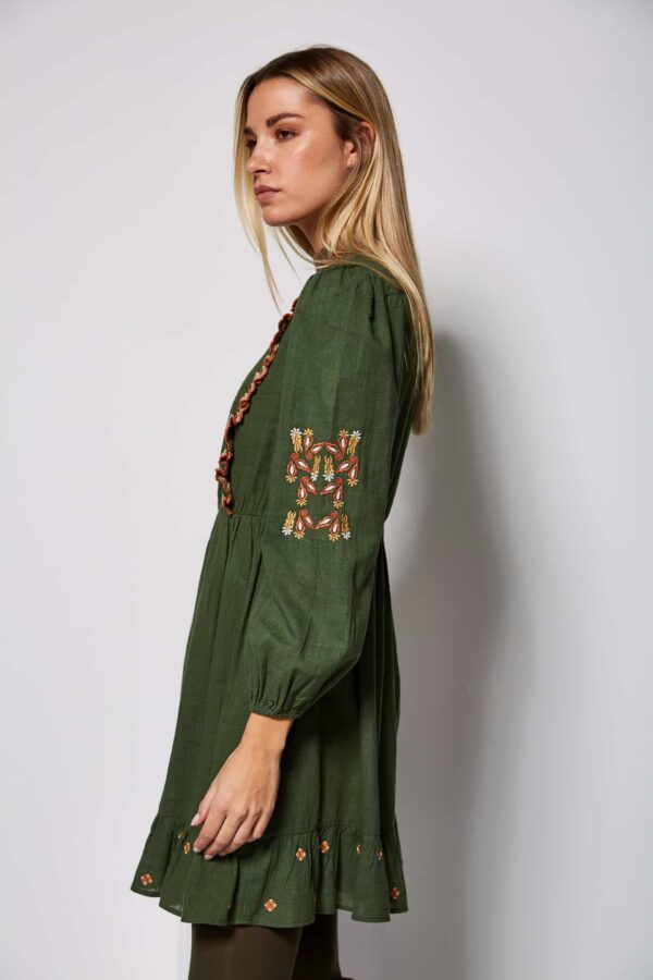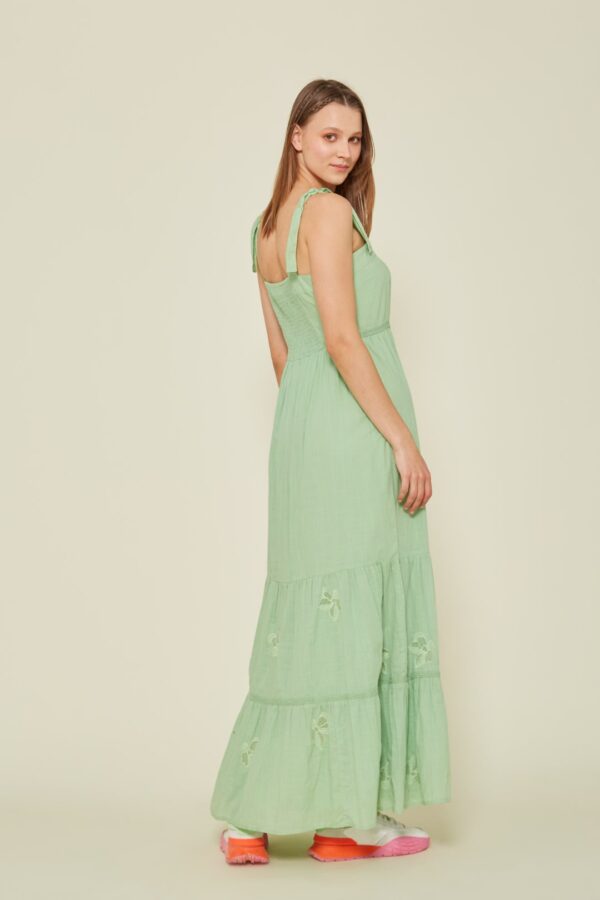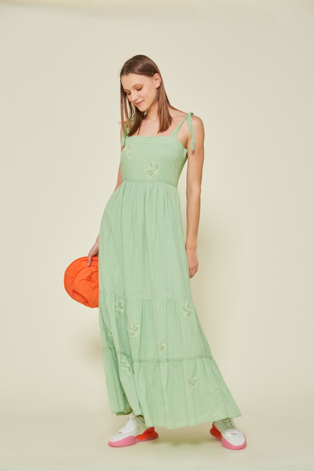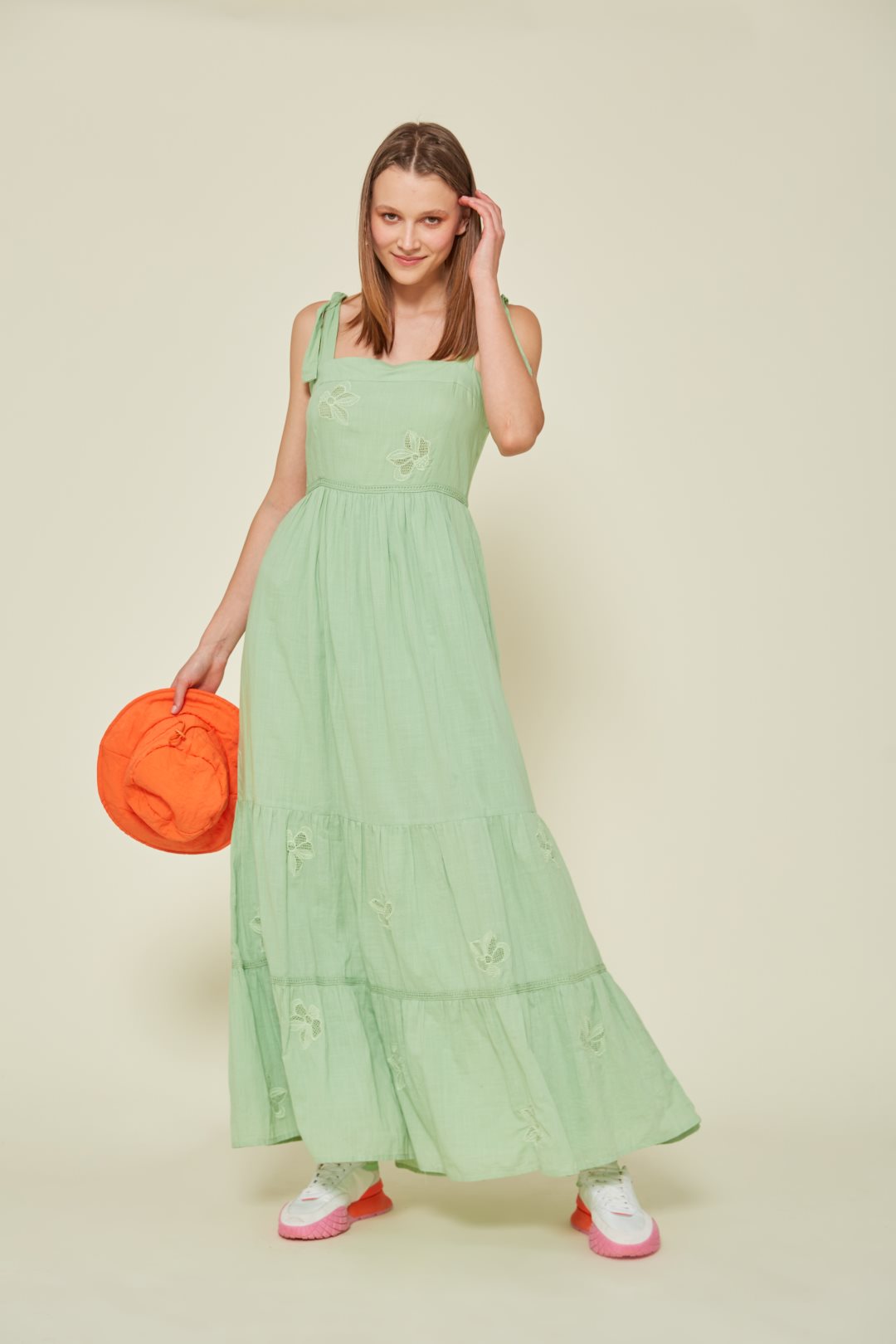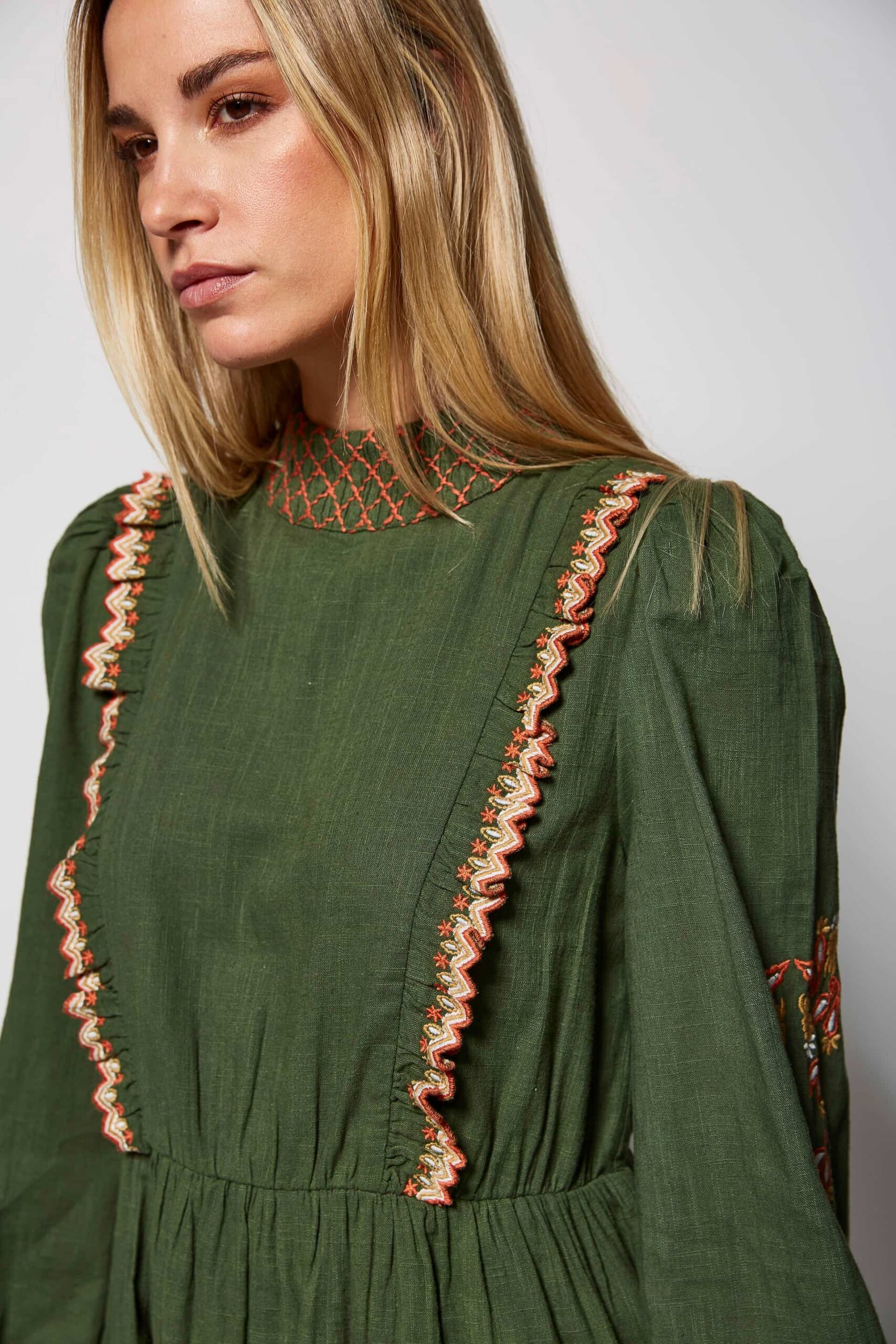 Este vestido midi de la colección MD’M STUDIO está diseñado para resaltar tu elegancia en cualquier evento. Confeccionado en una mezcla de lino y algodón, garantiza comodidad y frescura durante los días más cálidos. Su detalle de bordado de hojas le aporta un toque delicado y sofisticado, mientras que las mangas cortas y el cuello redondo crean una silueta perfecta para la temporada de primavera-verano. Ideal para invitadas, su diseño versátil lo convierte en una opción elegante y fresca para ocasiones especiales.